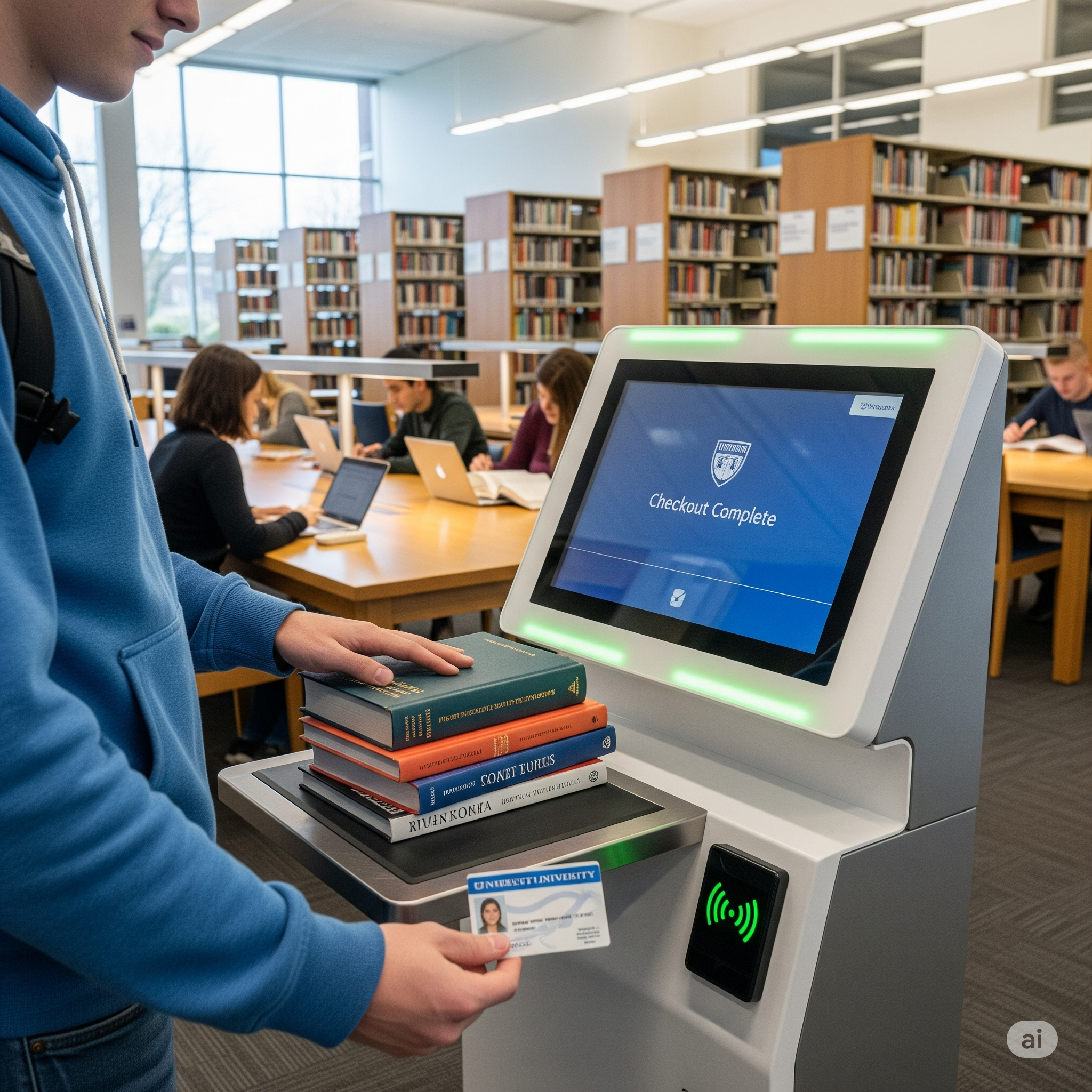 | Library Management | Students use a self-service kiosk to scan their ID and multiple books at once. The RFID system checks items in/out instantly. | Librarian manually scans each book’s barcode one by one and uses a separate system to check the student’s record. Long queues form during peak hours. |